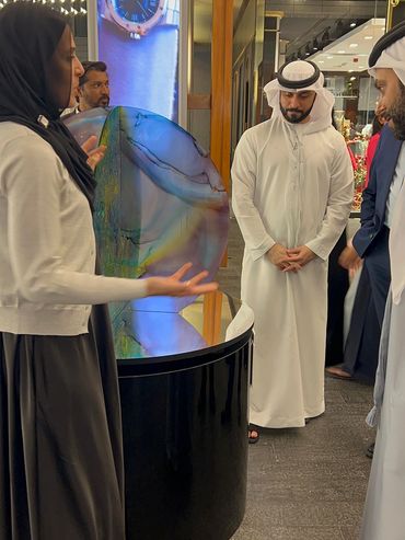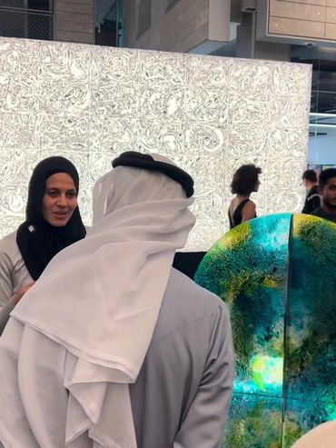 This piece began as a small 5cm cutout and grew into a 100cm sculpture! I love its interactive nature, with DIFC’s night lights beautifully illuminating the clear acrylic and accentuating the colours. Fun fact: the night before the exhibition, I dropped and broke it! After a stressful, sleepless night rebuilding, it was worth every moment.