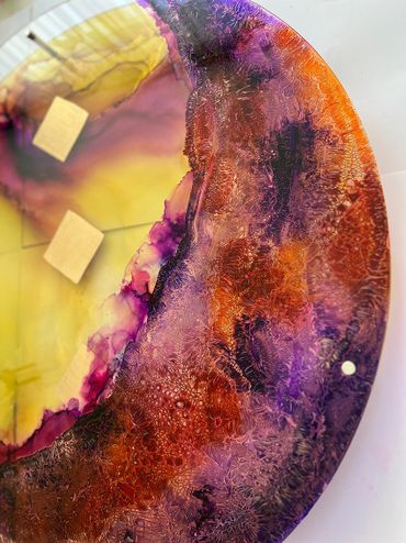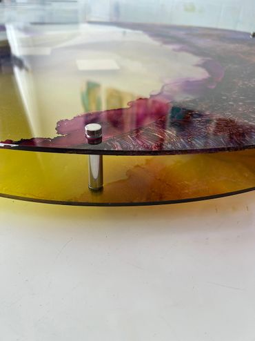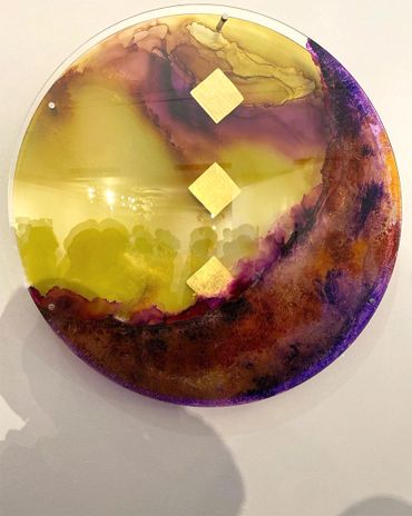 "Journey" is a layered artwork of transparent acrylic sheets, symbolising life’s stages through “Nuqtas” (pinpoints) that represent past events and illuminate future paths. Painted in autumn tones with gold leaf accents, it captures life’s transformative journey. Like autumn, it reminds us to embrace change with resilience and appreciation.